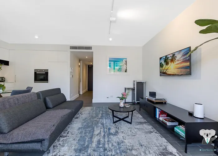 The 65 m² apartment lies in the Crown Street Surry Hills district, within 10 minutes' drive of the Sydney Opera House. The wide steel Sydney Harbour Arch Bridge is located 4.2 km away and Kingsford Smith airport is located 5 km from the apartment.